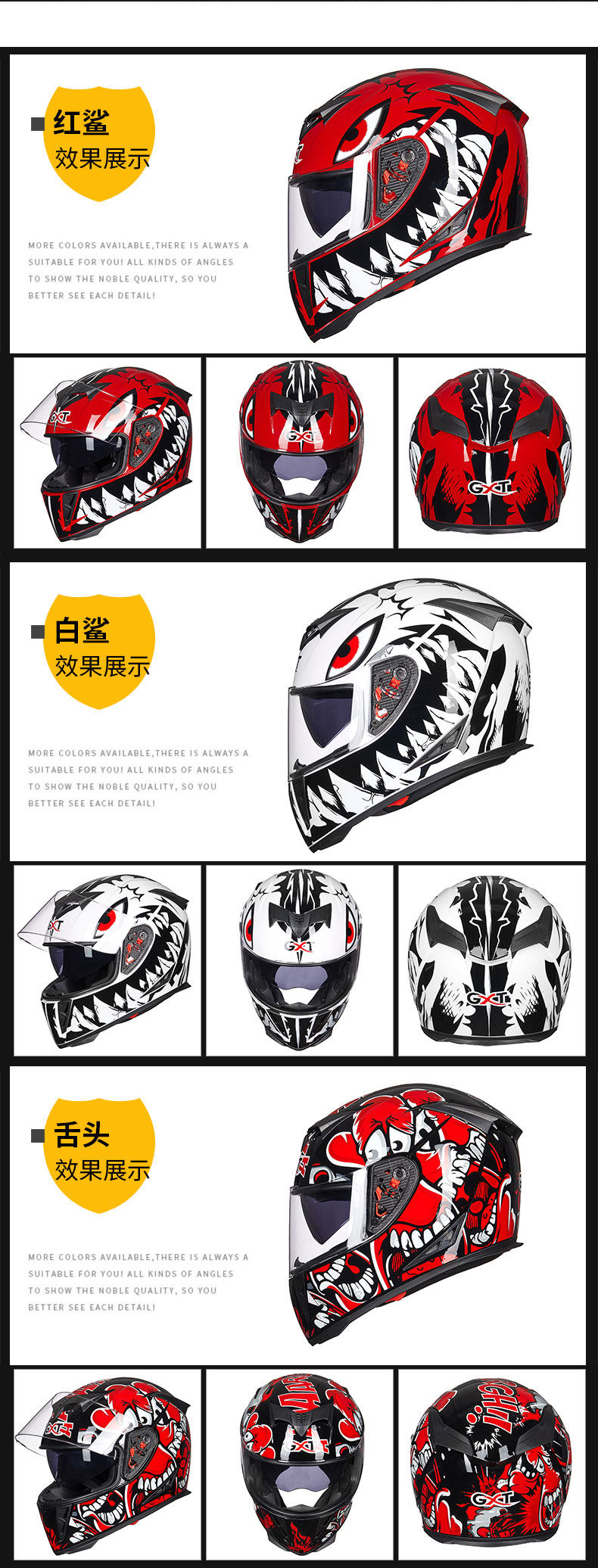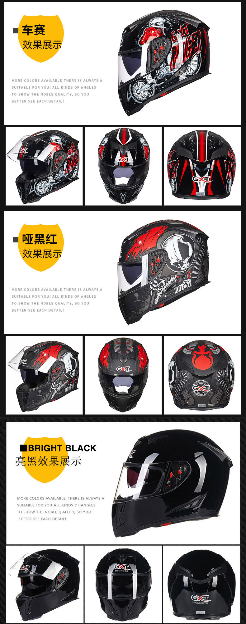 Бренд: GXT Модель: 358 Стиль: шлем с полным лицом Двойной козырек, ABS материал. Примечание: шлем поставляется с прозрачным козырьком. Размер: M (57-58 см) L (59-60 см) XL (61-62 см) XXL(63-64 см)