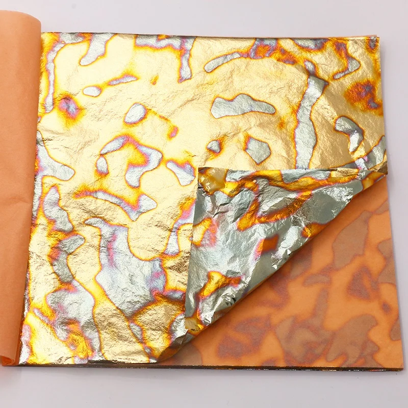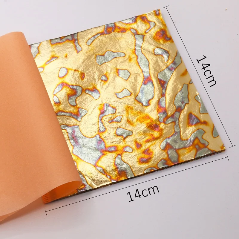 Особенности:Пестрый лист-это металлический лист, состоящий из настоящего листа меди и имитации золотого листа, который был обработан химически для создания цветовых узоров.