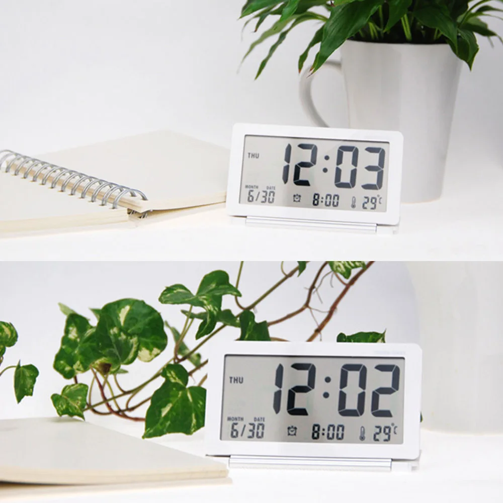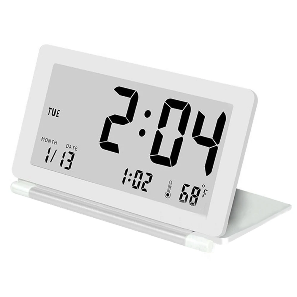 Дорожный складной тонкий бесшумный ЖК-дисплей, электронный цифровой Настольный будильник, календарь, термометр с чехлом для хранения, белый