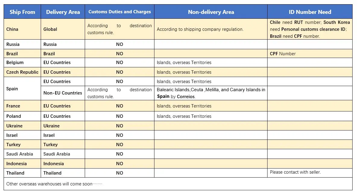 3. Таможенные пошлины и налоги не включены в стоимость доставки.