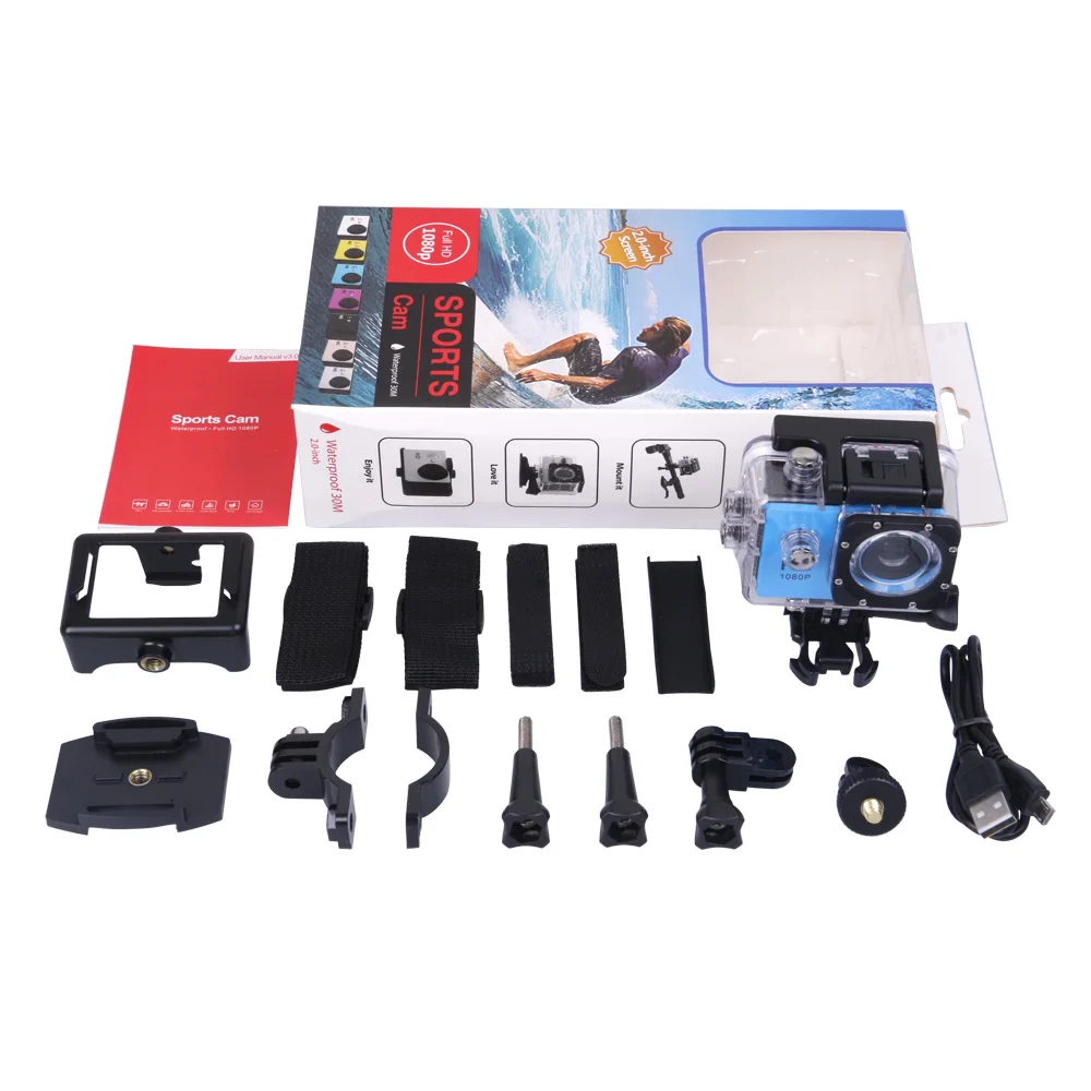 2 дюйма ЖК-дисплей 1080P Full HD Экшн-камера, выдерживающие погружение до 30 метров водонепроницаемые однообъективных зеркальных камер DV шлем с видеокамерой для занятий активным спортом (запись