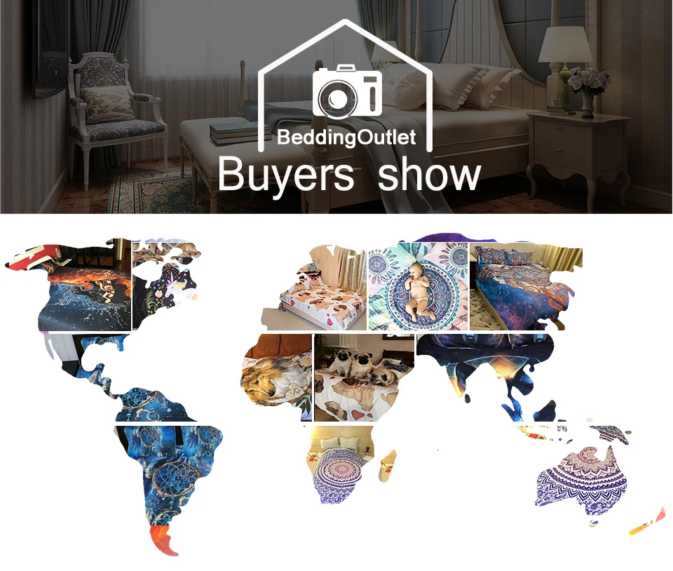 Q: Can I dropship from you?A: The advantages of drop shipping from us: Dropship like a boss, others leave to us.1. “BeddingOutlet” is a famous home textiles brand. We are a reliable manufacturer, with a fast service, high quality products and competitive prices; it’s very likely that you will make cash.2. We offer safe dropshipping and will ship for you without invoice, marketing materials or other information.3. We offer customization and exclusive product service for you better to enhance and protect your business. There is no MOQ.4. We have a fulfillment team and warehouses in many countries.5. We can fulfill order via CSV or XLS File.6.Reach to a certain amount of dropship orders, we provide free order for you.If you need pictures without watermark, you can download on the product description page. If there are no suitable pictures, please contact our customer service.We're very eager to assist and want to build a strong business partnership with you.Q: Which size is suitable for me?A: There is size table on the Product Description page, please measure the size of your quilt, and select the ideal size. If you are not sure of it, contact our customer service. Any size customize is accepted.Q: Can I add extra flat sheet for the bedding set?A: If you need solid color sheet, please search “Solid Color Bed Sheet” in our store.We also provide the printed sheet to match the duvet cover set,The sheet price is following: Twin: $17 Full: $22 Queen: $26 King: $29 Cal King: $35Q: Can I get more discount?A: Thanks for your interest in our items. There are fixed amount off discount and coupons in our store, you can use it if you meet the conditions. We can’t offer more discount since our price listed has been carefully calculated and leaves limited profit already, hope you can understand.Q: Can I customize the product?A: We can customize design and size for most home textiles items in our store. Including: Duvet cover, pillowcase, pillow, tapestry, blanket, beach towel, cushion cover and etc.Please contact our customer service for more information.Q: Why Russian customers need to fill in passport information?A: When you making order, your passport information will be required by the local customs in Russia. Please be assured that your information will never be told to the third party, and it's safe for you to provide information on AliExpress.Q: When will my order be shipped?A: Totally we need to arrange your package within 1-3 days, no more than 5days. If it’s an urgent order, please make remarks when you place order, or contact our customer service to urge for you.Q: When will the package arrive?A: The packages typically arrive in 7~20 business days, not counting holidays and weekends. You can view the shipping time picture of your country at the end of this page.Q: Delayed logistics in Brazil, Mexico and Chile.A: If your parcel has arrived to your country, hope you can give a little more time, since the postal system in Brazil, Mexico and Chile is usually slow. If you still do not get it within 2 weeks, please contact our customer service.Q:I’m not satisfied with the item.A: Refund or Return as you wish!If you’re not satisfied with our product, please contact our customer service freely, we can talk to fix the problem and give you a satisfied answer.Q: What’s your return policy?A: Our return policy: if it’s the quality problem of the goods, or goods send error, we offer full refund; If buyers bought the wrong goods, the buyer need to pay the freight returned goods, there can also be a full refund.Q: When will I receive the refund?A: The refunds will be proceeding within 3-15 days by Aliexpress. If you have some problems with it, please contact with the Alipexpress customer service! Thanks.All messages will be replied within 24 hours, your happy service guaranteed in Beddingoutlet.