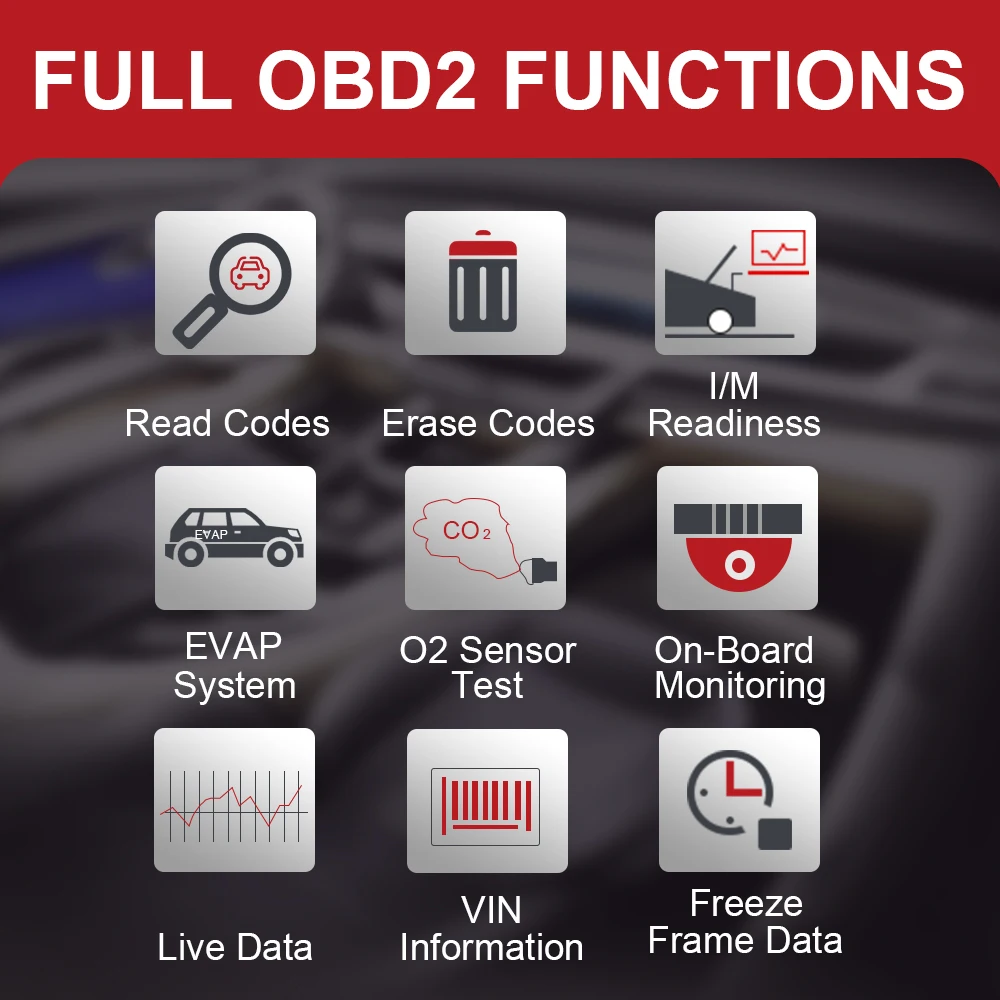 Поддержка всех транспортных средств после 1996 года с протоколом OBD2. Он также поддерживает 8 языков s, включая английский, португальский, русский, итальянский, испанский, французский, немецкий. Китайский