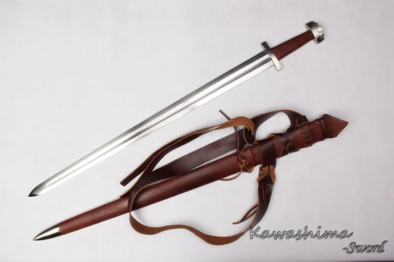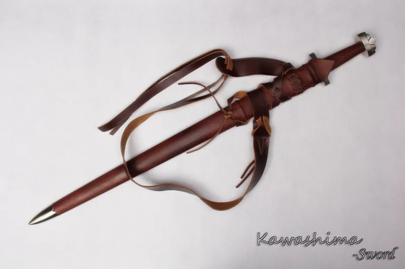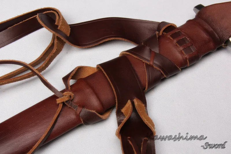 Этот меч изготовлен из 1060 высокоуглеродистой стали. Лезвие отличается термообработкой для получения твердого края для хорошего удержания кромок, сохраняя при этом жесткий меч и делая хорошую мягкость для тренировок. Поставляется с жесткой черной деревянной оболочкой, обернутой настоящей коричневой козьей кожей