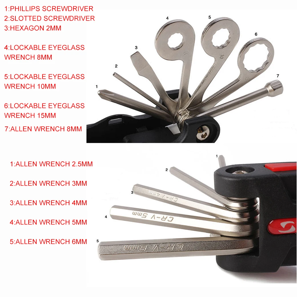 Комбинированные Инструменты для велосипеда включают следующие детали: