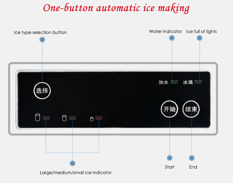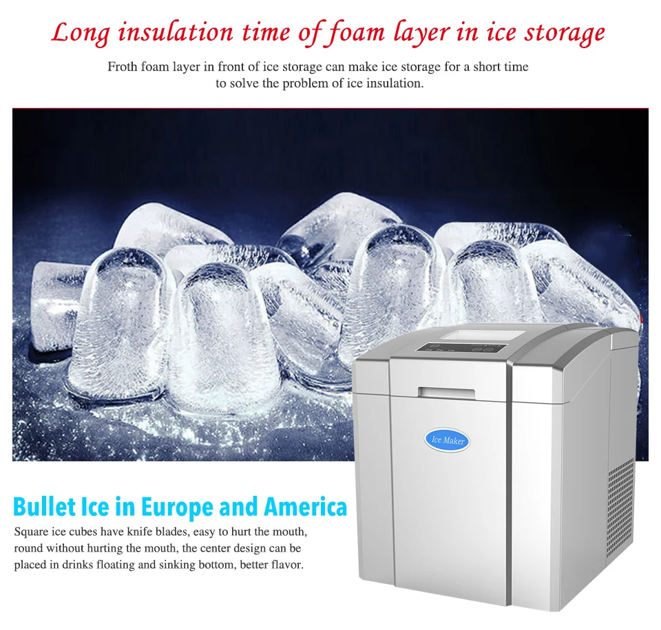 Мини-льдогенератор Размер: 410*355*430 мм Размер льда: 28*30 мм Вода: добавить вручную Напряжение: 220-240 В/50 Гц Вес: 19 кг Хладагент: R134A Мощность: 120 Вт Время приготовления льда: 11-15 минут Для хранения льда Емкость: 1,4 кг 24 производство часов: 20 кг/24 часа Общее количество льда: 2-3 часа 80-100 штук Тип льда: цилиндрический цилиндр