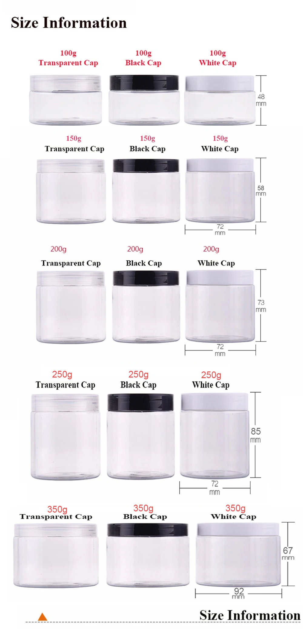 10 шт. пустой пластиковый контейнер для хранения, портативная Косметическая банка, прозрачная дорожная бутылка, маска для печенья, упаковка 100 г 150 г 200 г 250 г 350 г