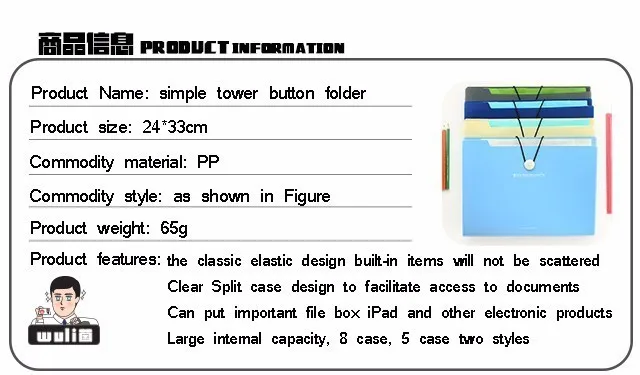 Название:Простая папка кнопки башни Количество:1pce Материал:ПП Вес:65 г Цвет/узор:Как показано на рисунке Размер:24х33см Теплая подсказка:Пожалуйста, убедитесь, что адрес доставки заполнен. Адрес не может быть изменен после доставки.