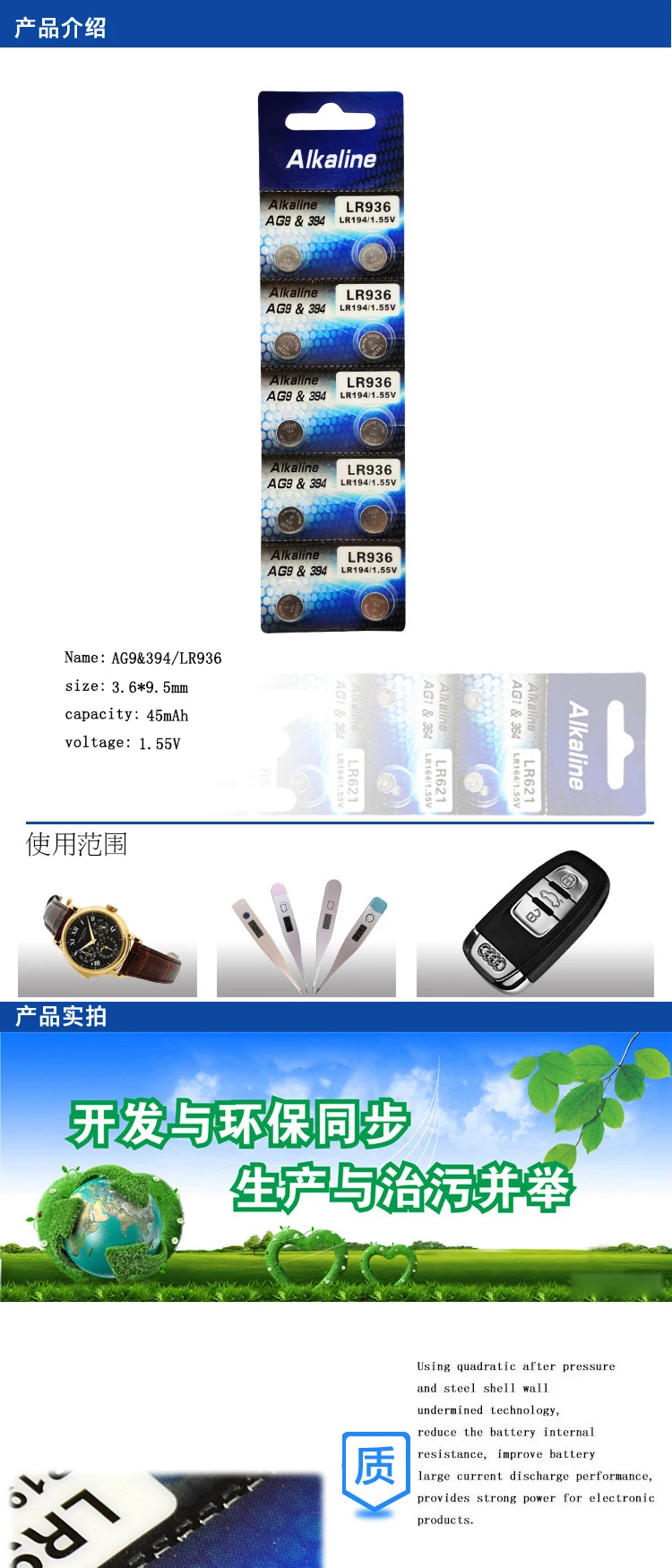 Предупреждение:Пожалуйста, держите эти и другие батареи подальше от детей. Посылка включает в себя: 10 шт. аккумуляторов AG9 1,55 в.
