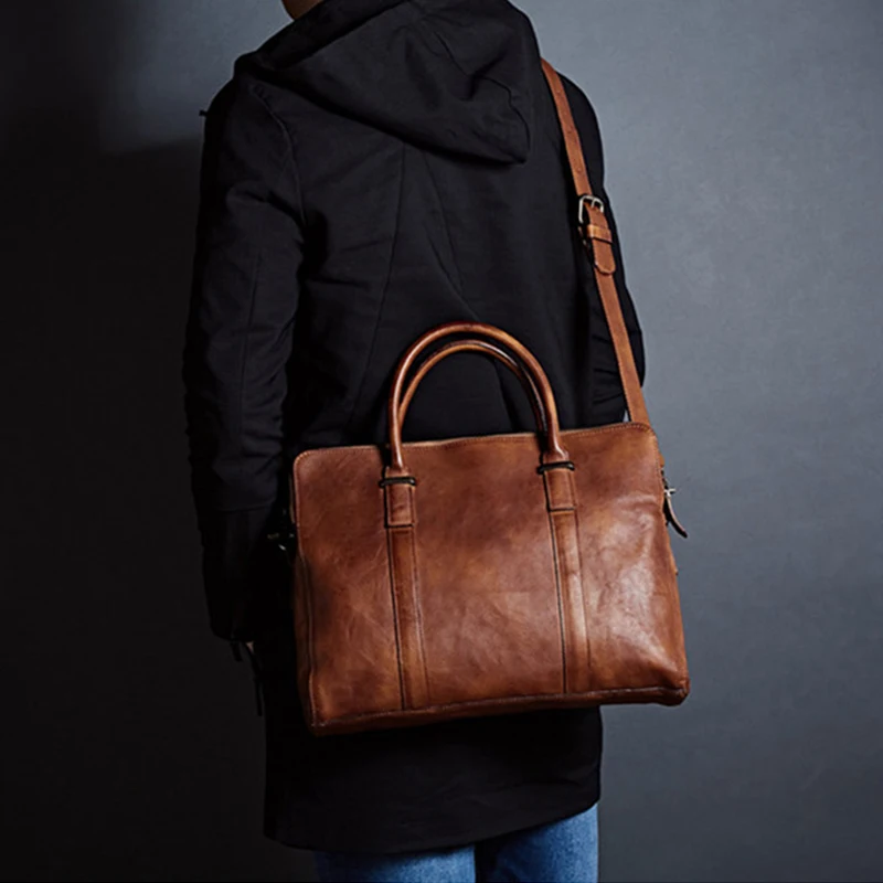 ROCKCOW растительного дубления кожаный портфель для мужчин бизнес сумка через плечо сумка для ноутбука 9043