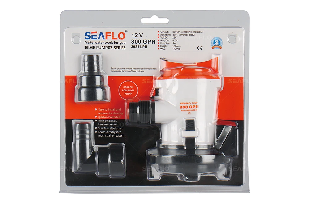 SEAFLO 03 серия 800GPH морской Трюмный насос. Как и наша серия 02, этот монтажный кронштейн позволяет насосу монтироваться вертикально. Кроме того, эта модель обеспечивает максимальную гибкость со съемным картриджем для легкого обслуживания. Стандартное соединение резьбовое, но включает в себя адаптеры для колючки, чтобы быть гибким к вашим специфическим потребностям.