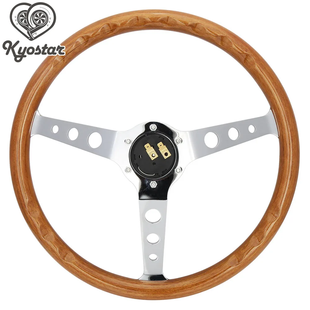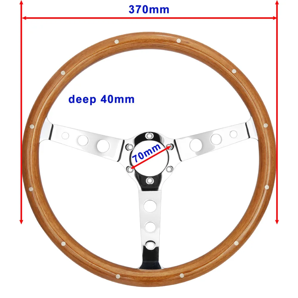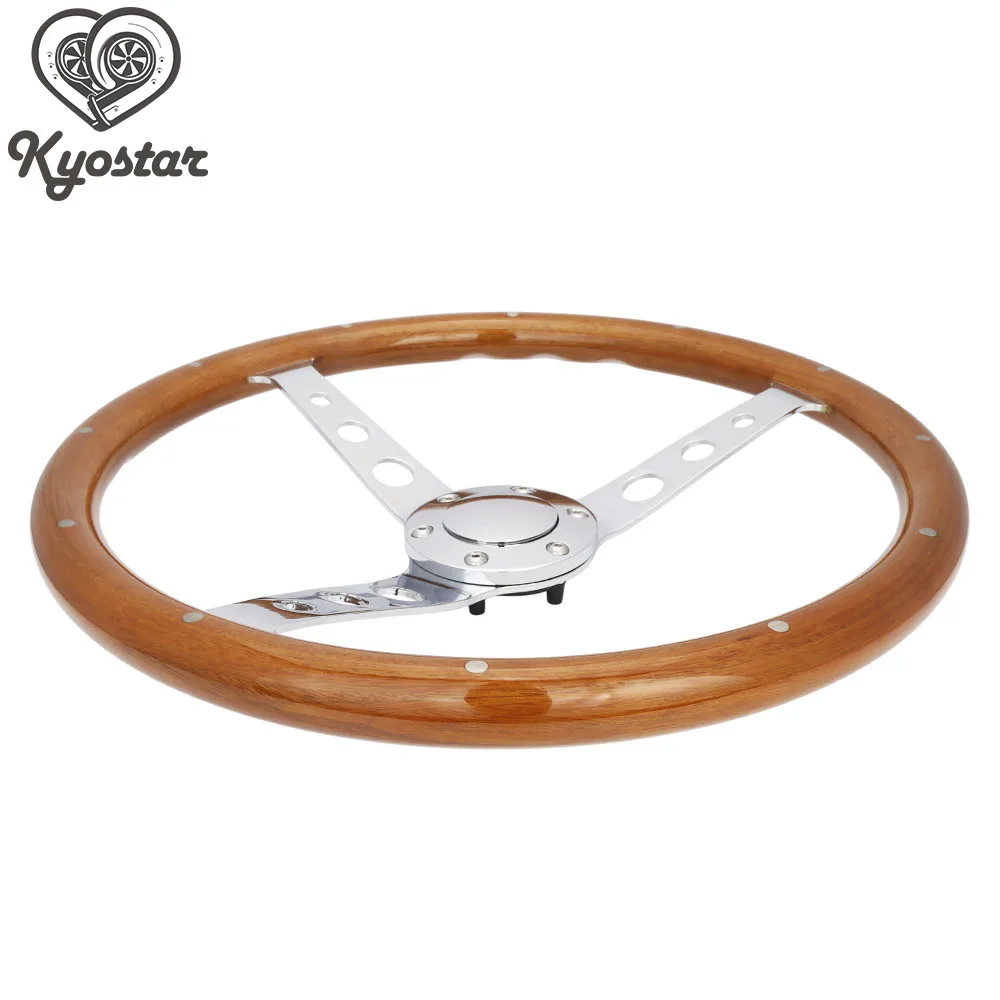 Универсальный 380 мм 15 дюймов классический деревянный руль с заклепками черный деревянный гоночный автомобиль Руль с хромированной серебристой спицей