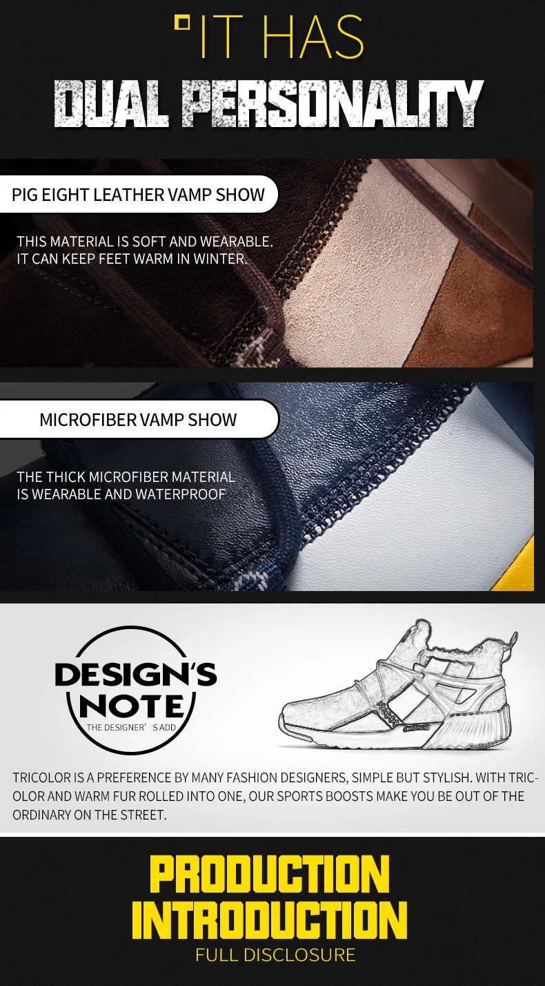 1. Поросенок восемь кожаных вамп шоу Этот материал мягкий и ноский, может держать ноги в тепле зимой. 2. Вамп из микрофибры Толстый материал из микрофибры-износостойкий и водонепроницаемый