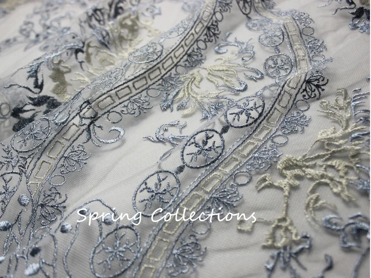 120*100 см кружевная ткань, оптовая продажа, светло-голубая вышитая цветочная ткань, ультратонкая сетчатая вышивка, кружевная ткань