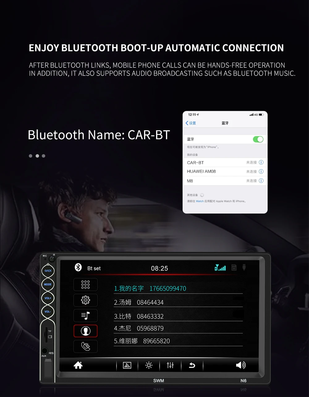 Новинка 2 Din Автомобильный видеоплеер 7,0 ''HD Bluetooth стерео радио FM MP4 MP5 Аудио USB Авторадио с управлением рулевым колесом
