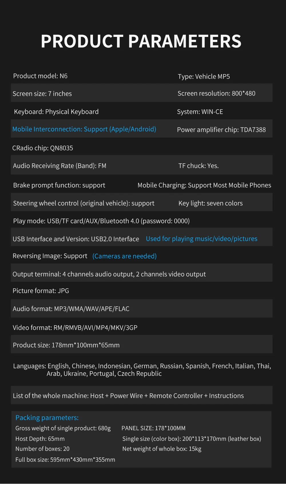 Поддерживаемый Формат аудио: MP3/WMA/WAV/APE/FLAC