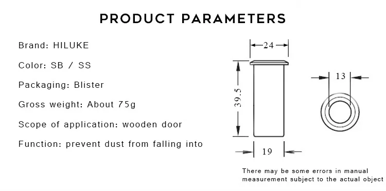 Бренд: HILUKE Цвет: SB/SS Упаковка: блистер Вес брутто: около 75 г Область применения: деревянная дверь Функция: предотвращает попадание пыли в
