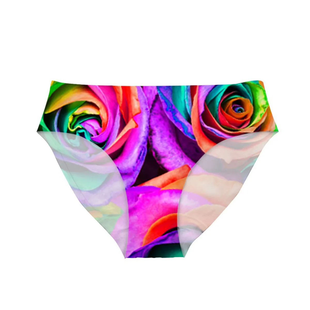 Нижнее белье, цветные сексуальные трусики, 3D Роза яркого цвета, с принтом, тату, женское нижнее белье, цельные трусы, трусы, женские стринги