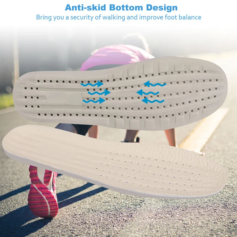 Анти-запах, анти-микробный и анти-грибковый Перфорированная кожа обеспечивает циркуляцию воздуха, чтобы ноги могли дышать Обеспечивает максимальную вентиляцию от пятки до носка, что помогает уменьшить влажность и запах Стелька является отличным поглотителем пота, амортизирует ноги и гигиенична Дизайн пятки обеспечивает поддержку и защиту поврежденных и уставших ног Нескользящая конструкция удерживает всю стельку в правильном положении Превосходно удобные и амортизирующие, обеспечивая отличную поддержку Увеличивает вашу стабильность, поддерживая ногу и предотвращая травму стопы Научно разработанный, чтобы помочь вам ходить комфортно, весь день Специально разработан для занятий спортом, бега, прогулок и повседневного использования Цвет: бежевый. Материал: латекс и кожа Длина: 25,5/26,5/27,5/28,5/29,5 (см) Размер: Европейский (36-37/ 38-39/ 40-41/ 42-43/ 44-45) Посылка включает: 1 пара стелек