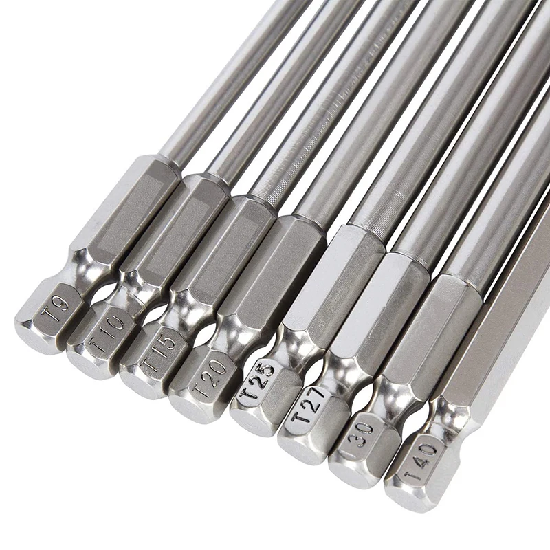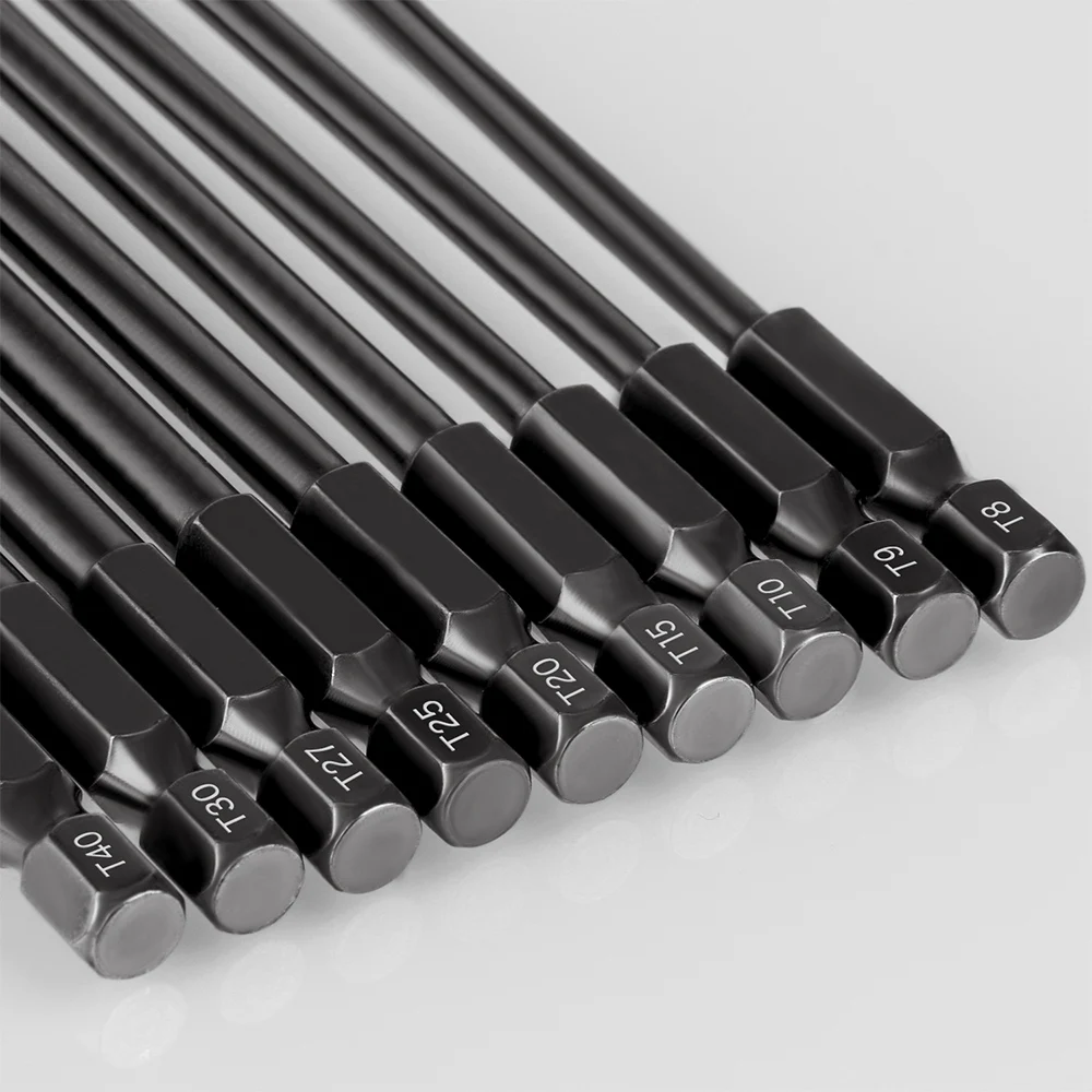 9 шт 100 мм Размер головки Torx: T8, T9, T10, T15, T20, T25, T27, T30, T40