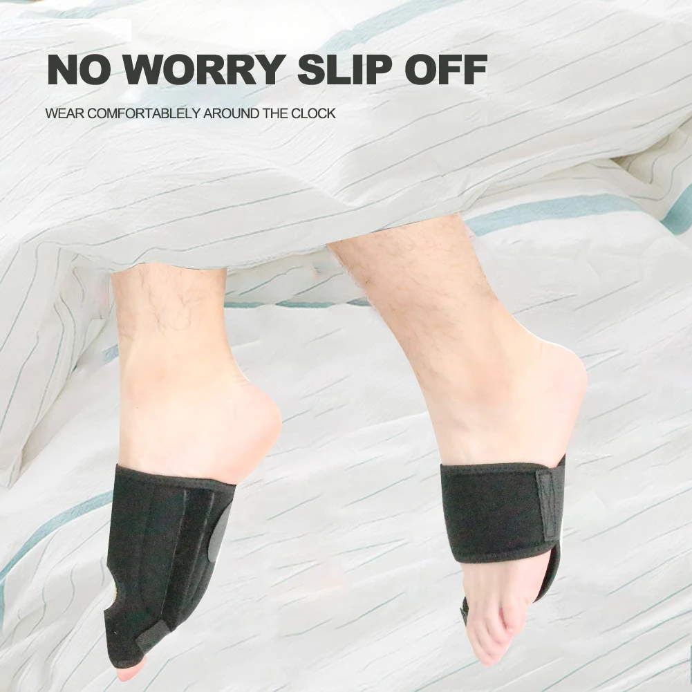 Лента может быть отрегулирована для регулировки большого пальца ноги, чтобы предотвратить вальгусную деформацию.