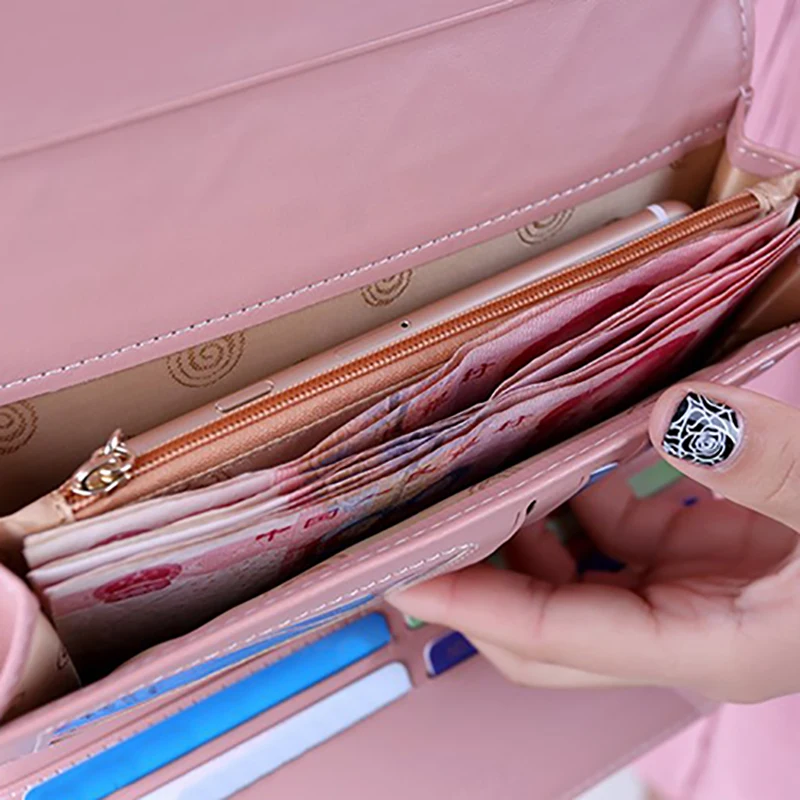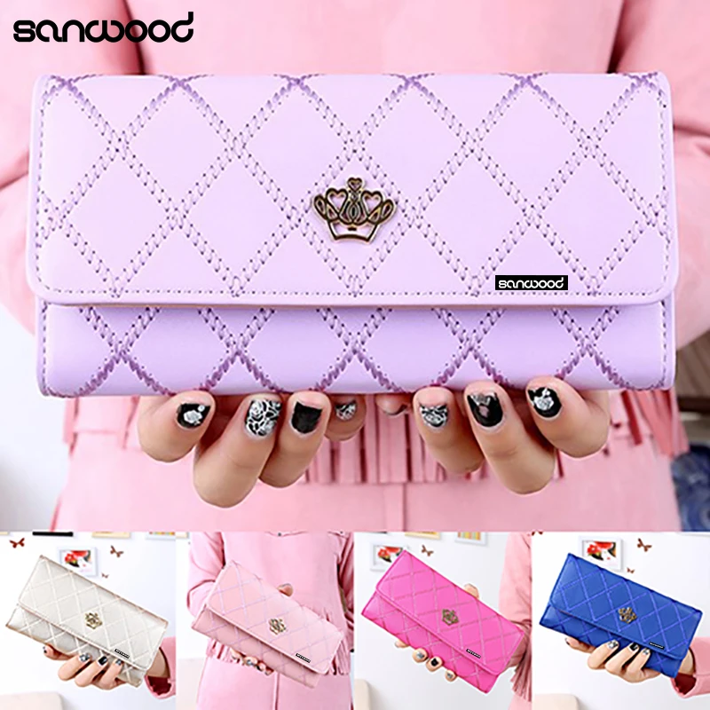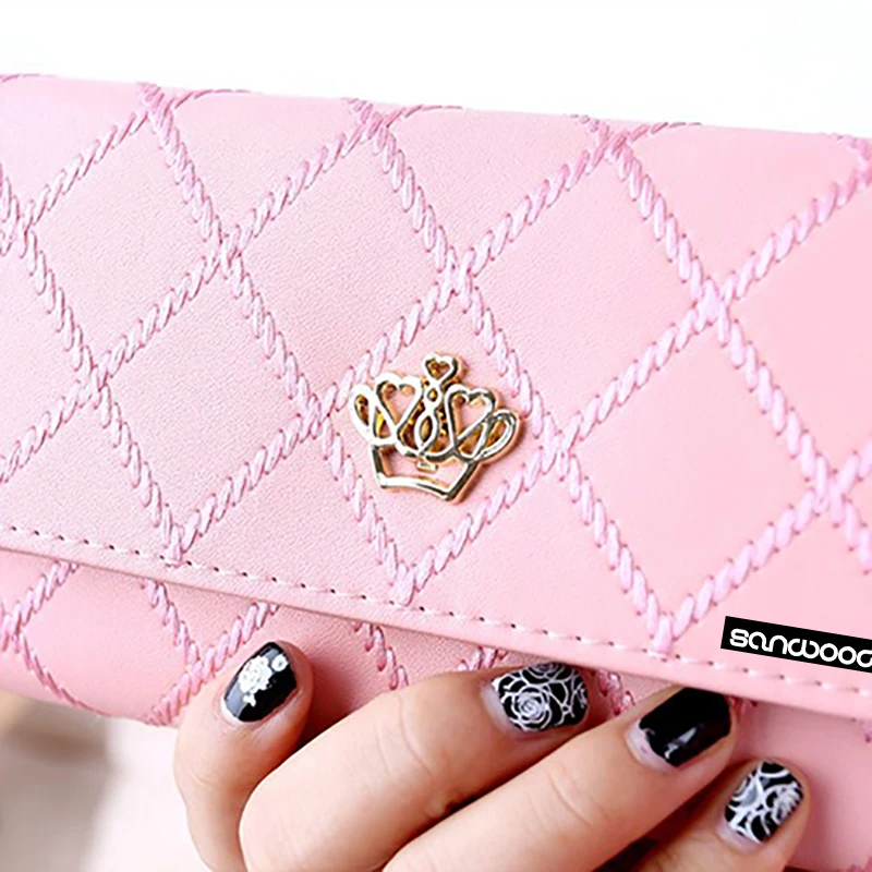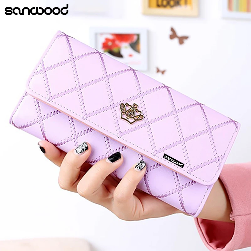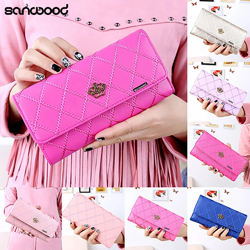 Женский модный длинный кошелек-клатч из искусственной кожи с узором короны ромбов