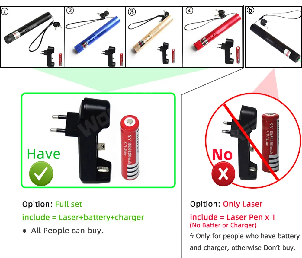 => Если вам нужен аккумулятор, пожалуйста, закажите полный комплект, в противном случае вы можете получить только лазер.