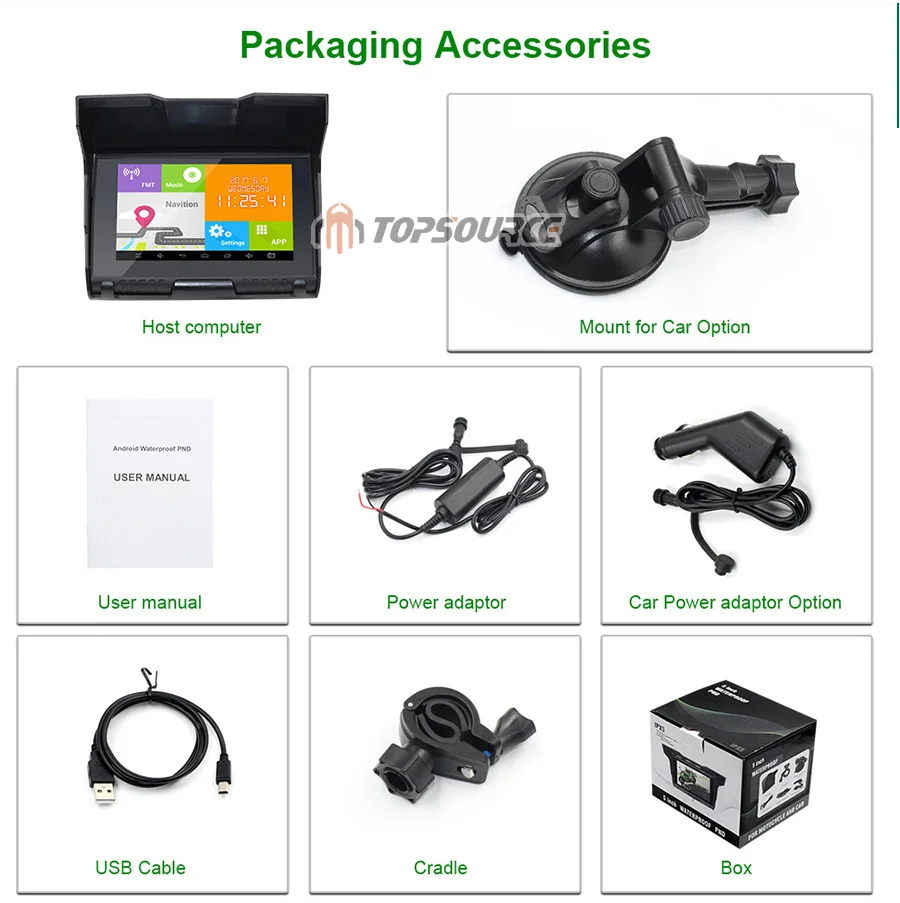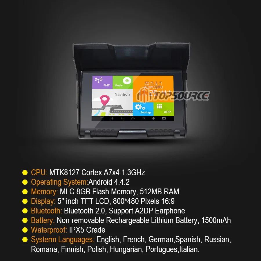 TOPSOURCE 2017 Новый 2 в 1 5 "IP67 водонепроницаемый мотоцикл gps навигация Автомобильный gps навигатор Android 4.4.2 WIFI 512M 8GB Bluetooth