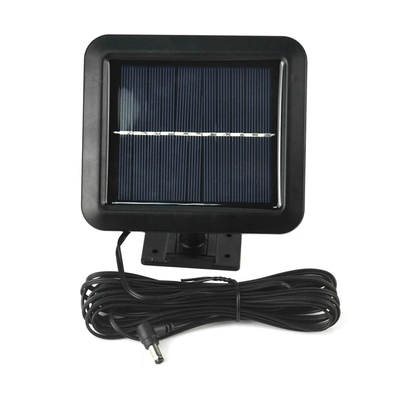 Материал: АБС-пластик и поликарбонат Источник света: 56 светодиодный бисер Цвет светильника: белый Солнечная панель: поликристаллический кремний 5,5 В 1 Вт Мощность светодиодный лампы: 1,5 Вт Источник питания: 2200mA 3,7 V литиевая батарея (входит в комплект) Время зарядки: 8 часов Время работы: более 12 часов Тип датчика: инфракрасная технология человека и светильник Задержка датчика: 30 секунд Угол обнаружения: 120 градусов Обнаружение движения: 5-8 метров Водонепроницаемость: IP65 Кабель питания: 5 метров