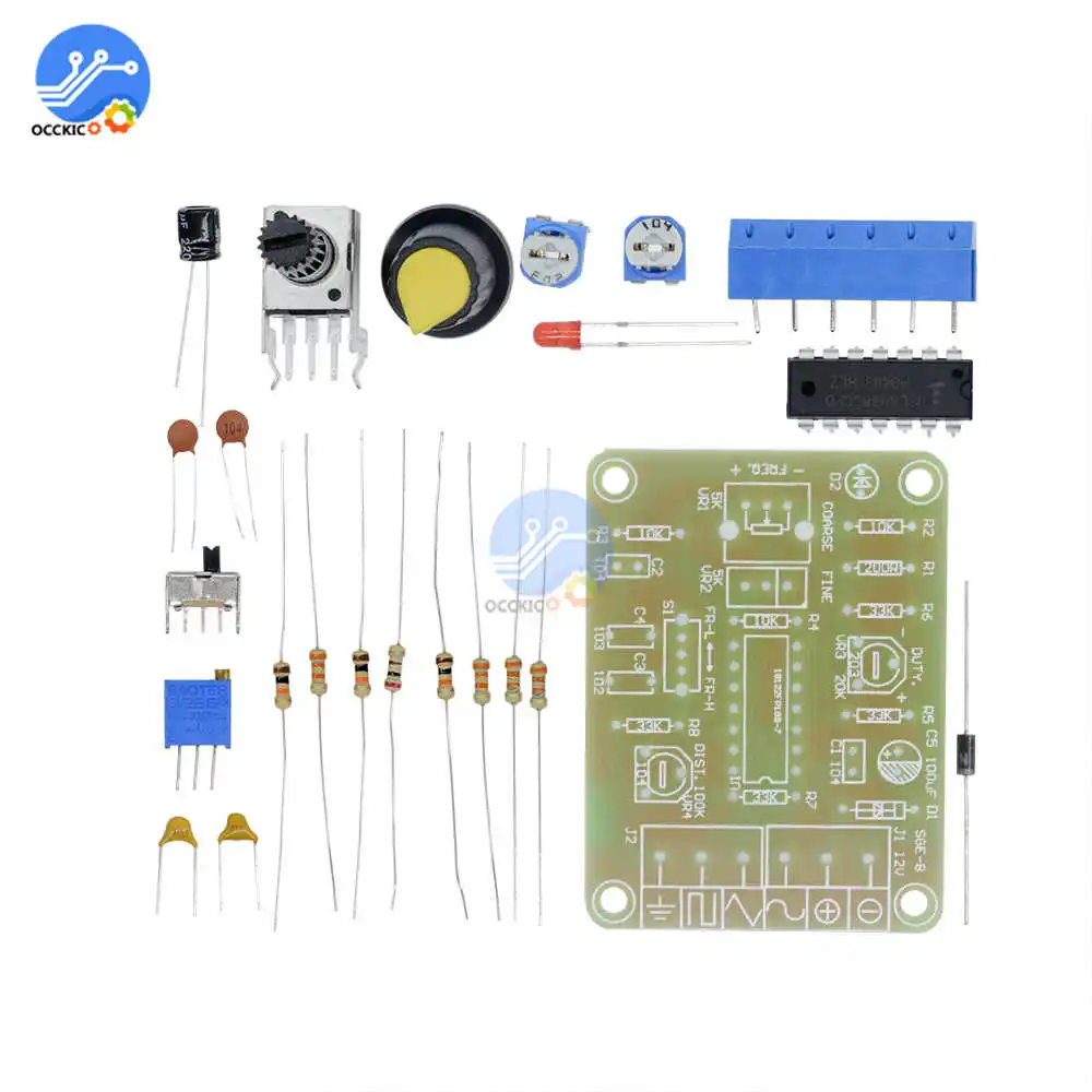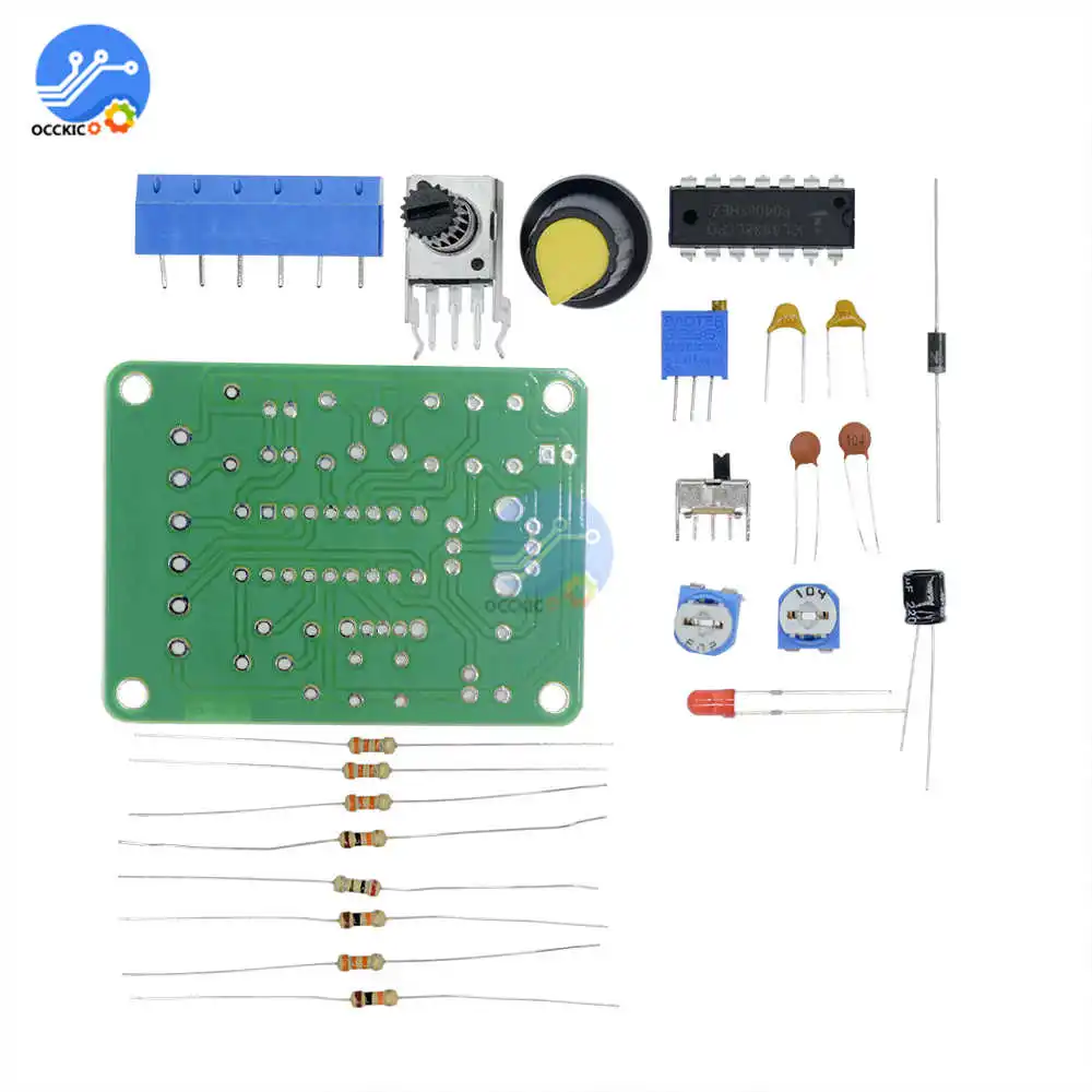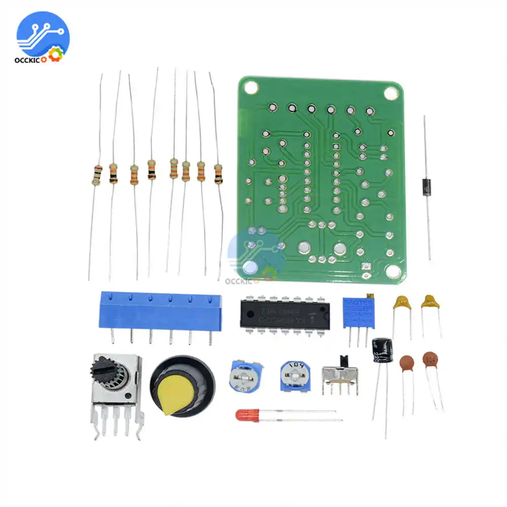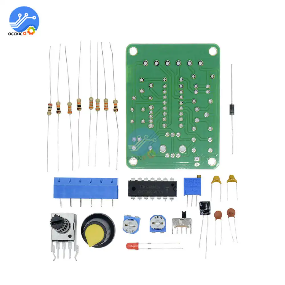 Особенности: Генератор Функций чипа ASIC ICL8038 с отличной производительностью, добавьте небольшое количество резистивных и емкостных компонентов, может произвести синусоидальную, треугольную и квадратную волну, а также частоту сигнала, рабочий цикл, регулируемая Синусоидальная волна, искажение Обратите внимание: Требуется определенная способность «сделай сам», вам нужно самостоятельно сварить комплект Описание: ICL8038 pin функции: 1 ступня, 12 ступней: клемма регулировки синусоидальной формы; 2 ступни: синусоидальный выход; 3 фута: треугольная волна на выходе; 4 ступня, 5 ступня: частота и рабочий цикл (или ассиметричная Форма волны) регулировка; 6 футов: V +, положительное питание; 7 футов: офсетная, 8 футов: клемма с регулировкой частоты; 9 футов: квадратная волна на выходе. Это Выходная клемма с открытым коллектором, работа должна занимать резистор нагрузки на соответствующий терминал положительного электропитания от штифта, чтобы получить TTL-совместимый квадратный-волновой выход, сопротивление нагрузке должно быть подключено к блоку питания 5 В; 10 футов: клемма таймерного конденсатора; 11 футов: V-, отрицательный блок питания, терминал или земля. Используйте положительное и отрицательное питание, 11 футов в отрицательное питание, выходная форма сигнала симметричная по сравнению с 0 В; Используйте один положительный источник питания, 11 футов заземленная, выходная форма сигнала униполярная, равномерное напряжение + VCC / 2; 13 футов, 14 футов: пустая ступня. Наборы рассчитаны на диапазон частот 50-5 кГц, два диапазона с переключателем S для переключения, RP1-это настройка частоты, RP2-это настройка рабочего цикла, RP3-это настройка искажений синусоидальной волны. В цепи используется один блок питания 12 В, вход от X1; X2, X3-Выходная сторона формы волны, вы можете использовать осциллограф для наблюдения за тремя выходными волнами. Модель: ICL8038 Вход 12 В постоянного тока Частотный диапазон 50-5 кГц, Размеры: 6 см * 4,5 см * 0,2 см Вес: 26 г Посылка включает в себя: 1 комплект генератор функционального сигнала Модуль и электронные сигареты kit