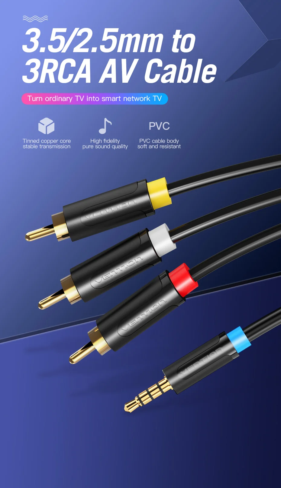 3.5/2.5mm to 3RCA AV Cable