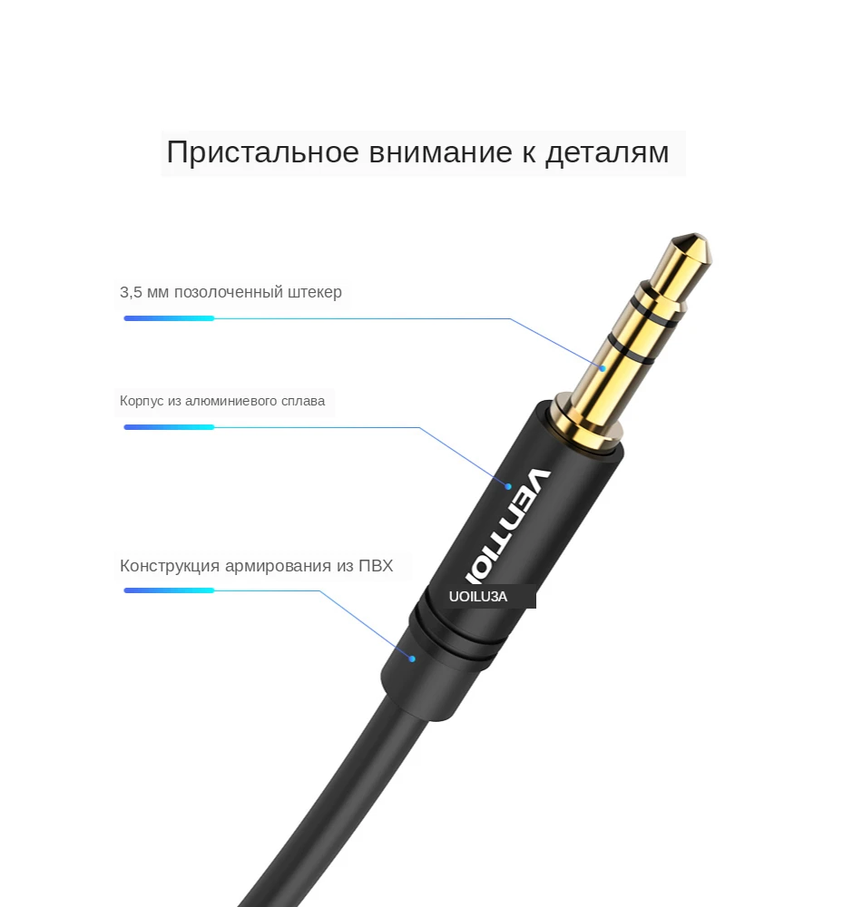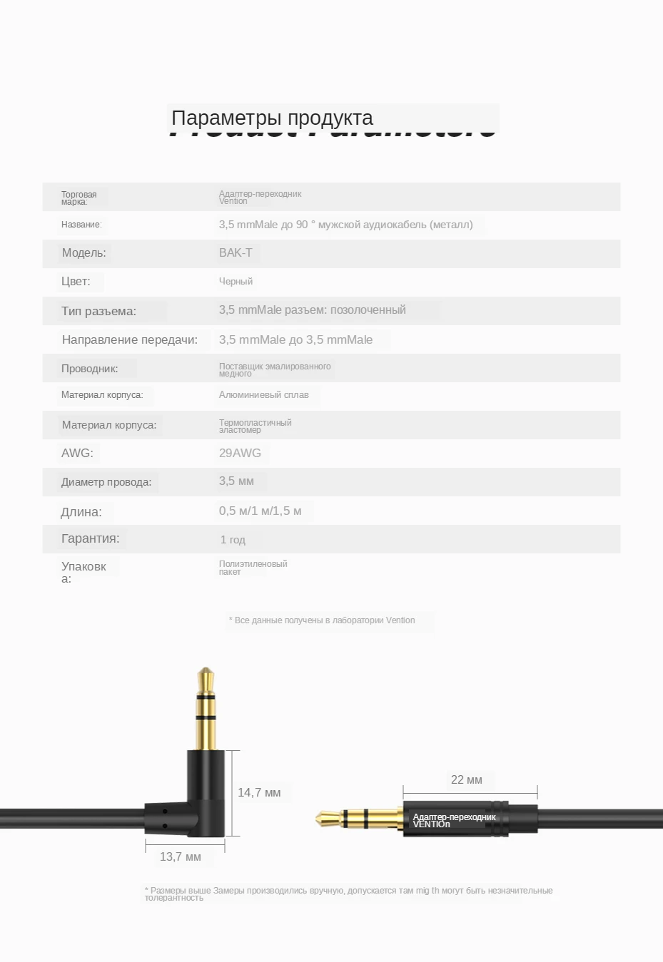 Аудиокабель Vention премиум-класса 3,5 мм используется для подключения iPod, iPhone или медиаплеера к автомобильной стереосистеме или динамику. Интерфейс под прямым углом 90 градусов, простой в подключении и хранении. Тонкий металлический разъем корпуса позволяет подключать его к источнику питания, не снимая корпус телефона / планшета.