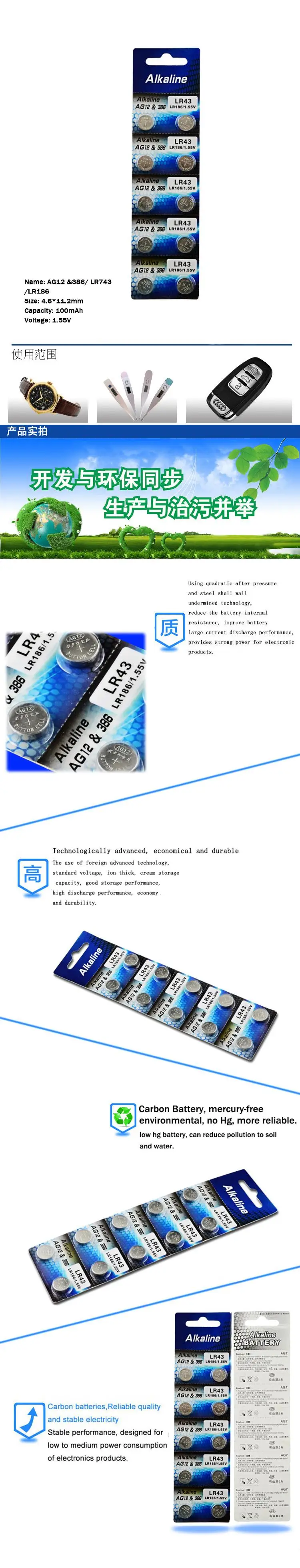 LR43 AG12 386A SR43 186 LR1142 батарея 1,55 V Электроника Щелочная Кнопка монета батареи для часов игрушки и т. Д. Цена Facroty