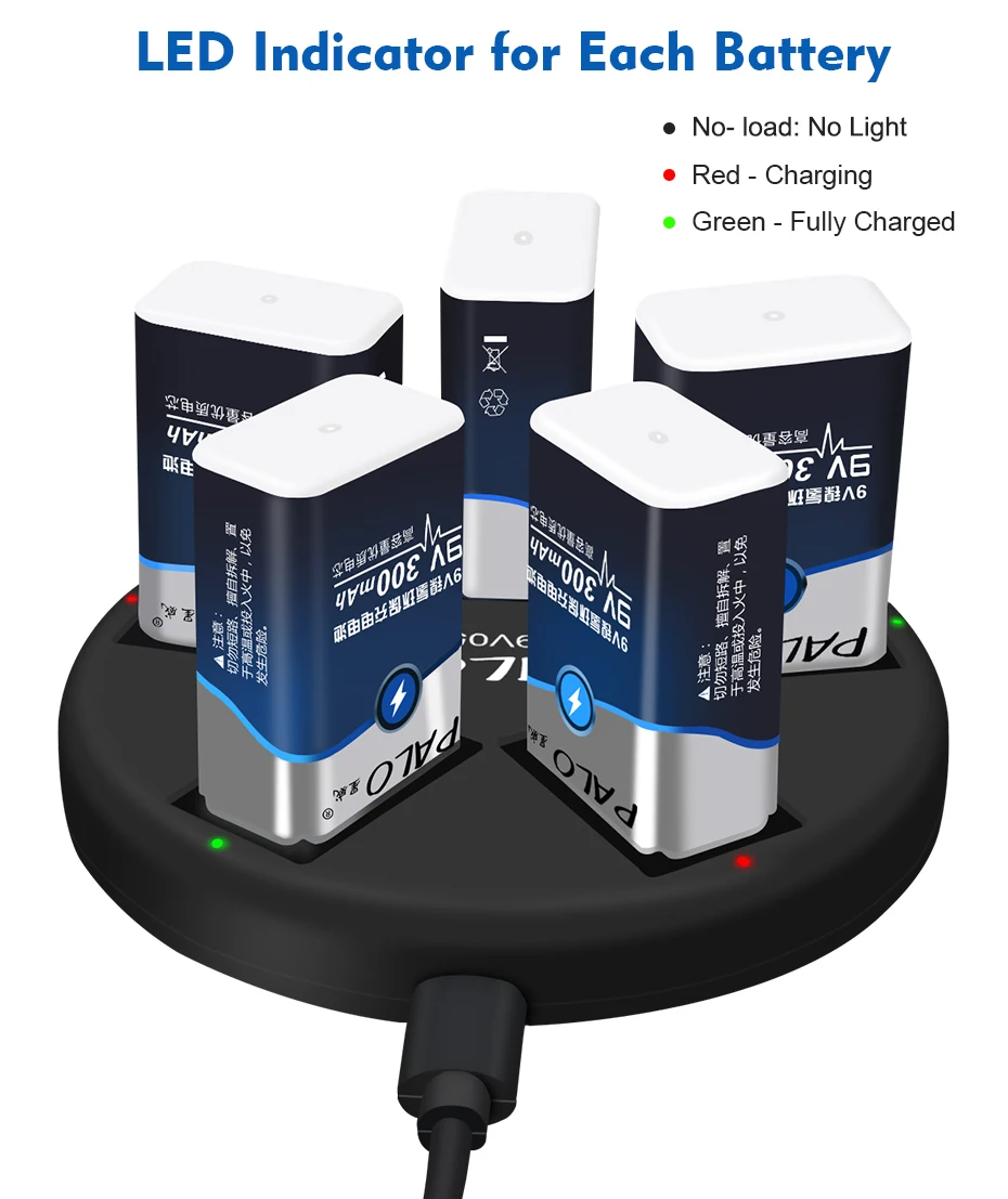 Зарядное устройство для литий-ионных/никель-металл-гидридных аккумуляторов 9 В-Ультра подходит для литий-ионных/никель-металл-гидридных аккумуляторов 1/2/3/4/5 9 В.
