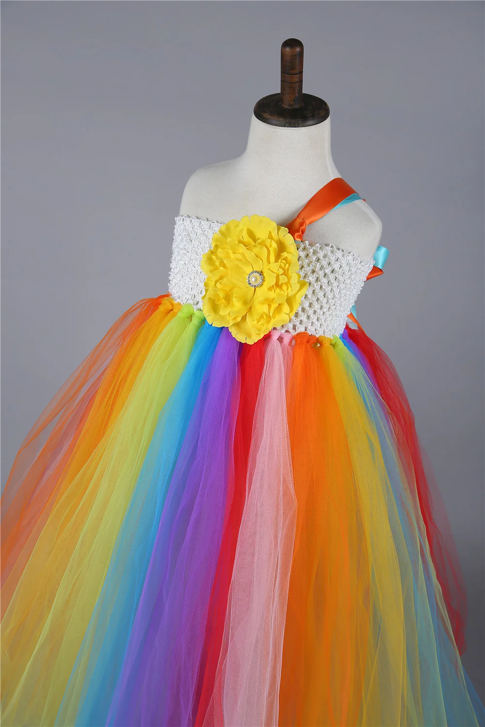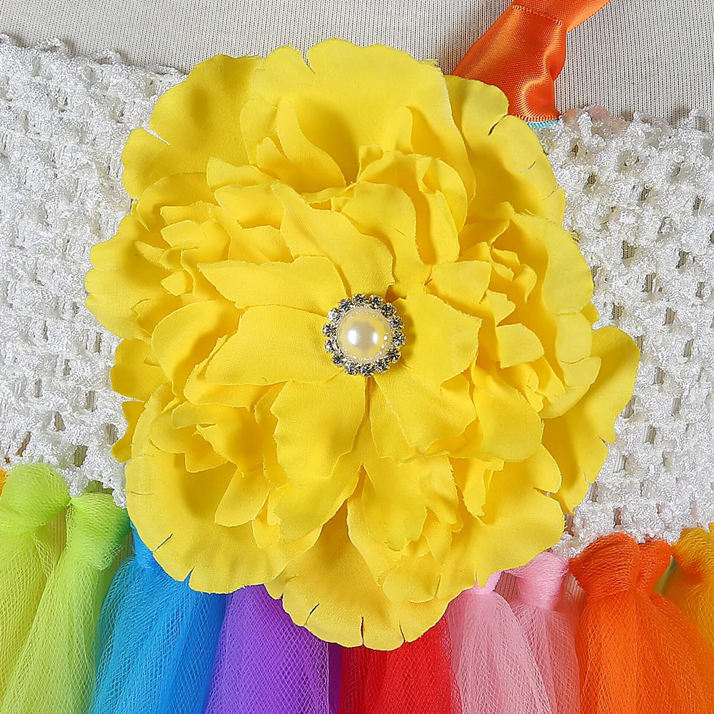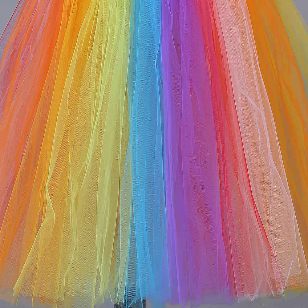 Разноцветное Радужное платье-пачка с цветочным узором для девочек; Детское Пышное Бальное Платье; Платье принцессы из тюля; Платья для девочек на день рождения, танцы, свадьбу, вечеринку