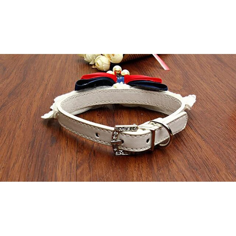 Новый дизайн, красные банты, стразы, ошейник для собак, белые кружевные нагрудники, регулируемый кожаный ошейник для питомцев, товары для маленьких кошек, чихуахуа, Тедди
