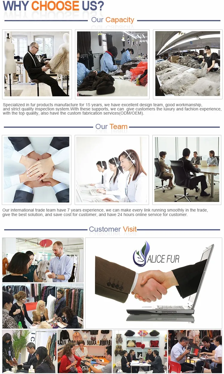 Zaoqiang Alice Tzu Fur Ltd является профессиональным производителем роскошных меховых изделий, расположенным в провинции Хэбэй, известной производством меховых изделий в Китае. С для детей 10 лет Международный бизнес в сфере торговли опытом, наша продукция получила высокую репутацию в США, Испания, Нидерланды, Италия, Южная Корея, Россия, и т. д.,