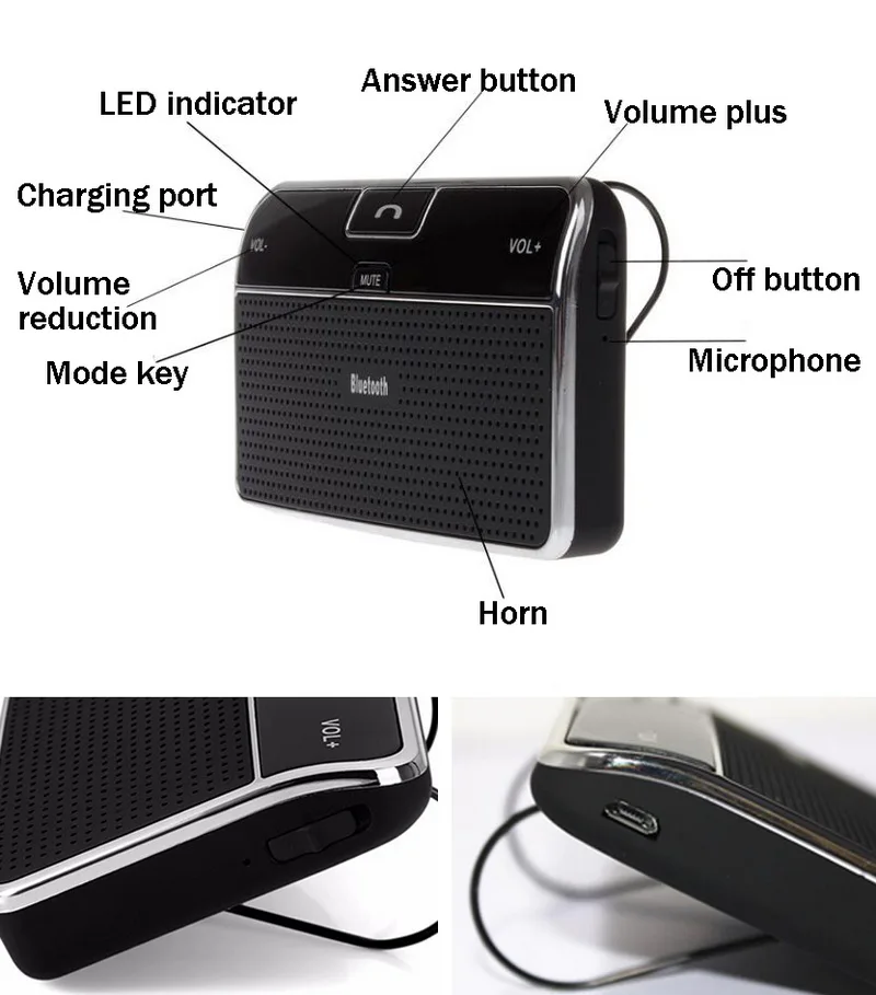 Универсальный Bluetooth 4,0 EDR в автомобиле спикерфон солнцезащитный козырек беспроводной автомобильный комплект громкой связи музыкальный приемник + Автомобильное зарядное устройство