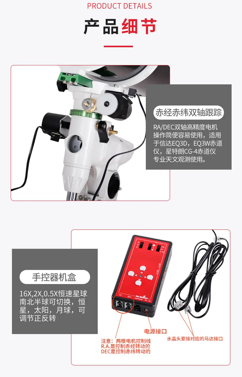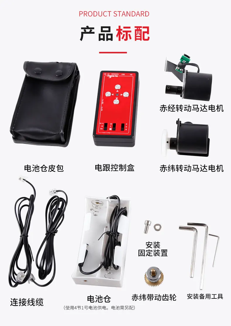 Purpose: to track celestial body observation or photography, the equatorial axis can correct the tracking error to meet the needs of long-term tracking photography