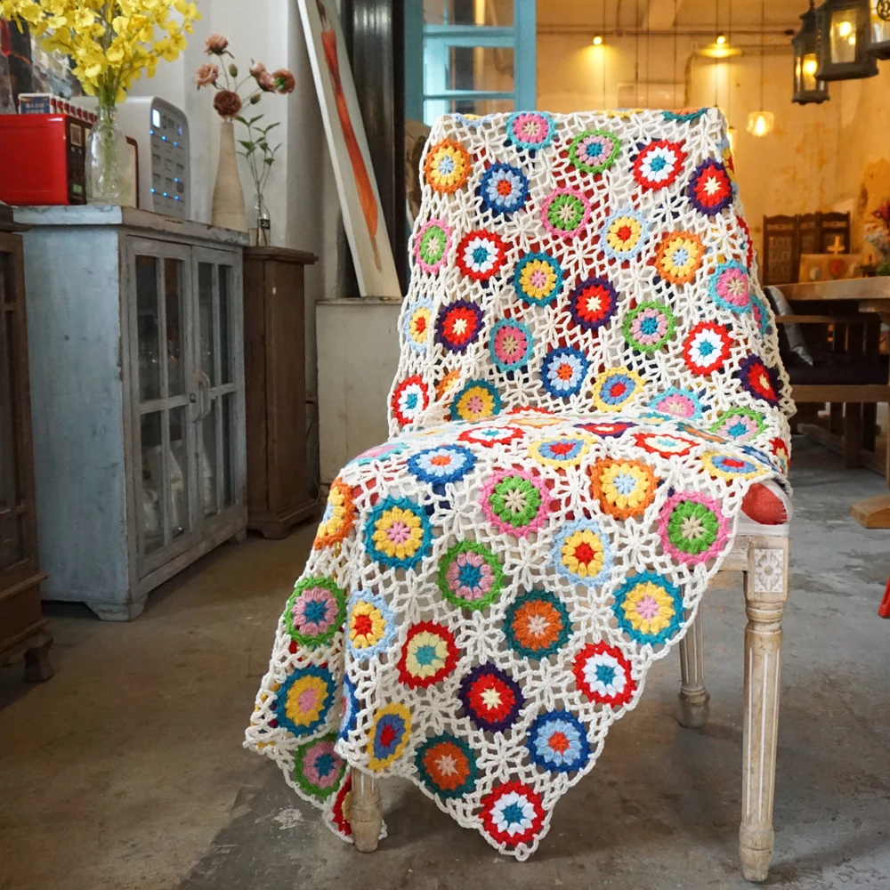 ● Вязаное крючком одеяло ручной работы, случайный цвет цветка