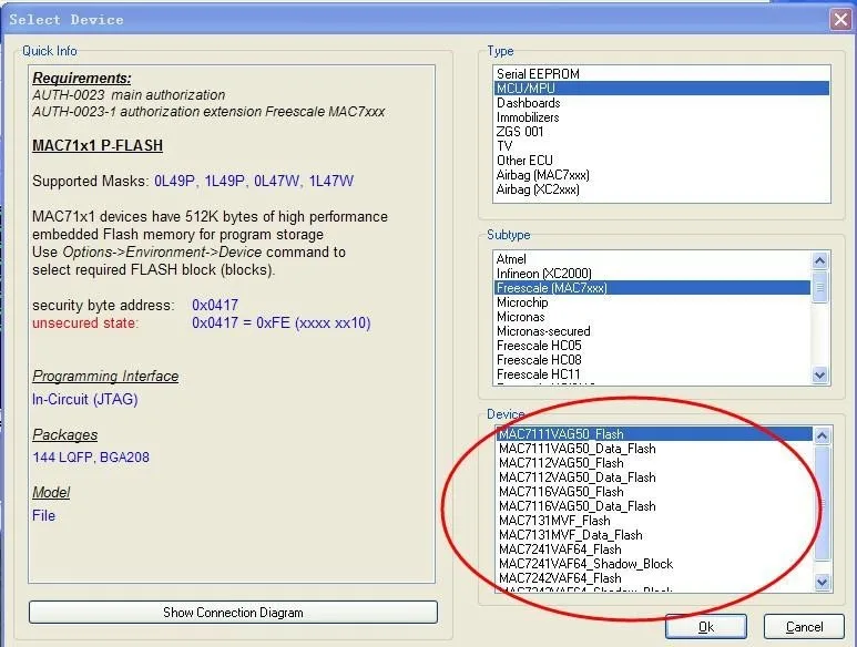 AUTH-0015 авторизация MPC5xx (в зависимости от программы устройства автоматически определяет MPC5xx, M95xxx тип устройства, флэш-память, внешняя вспышка и размер памяти конфигурации)