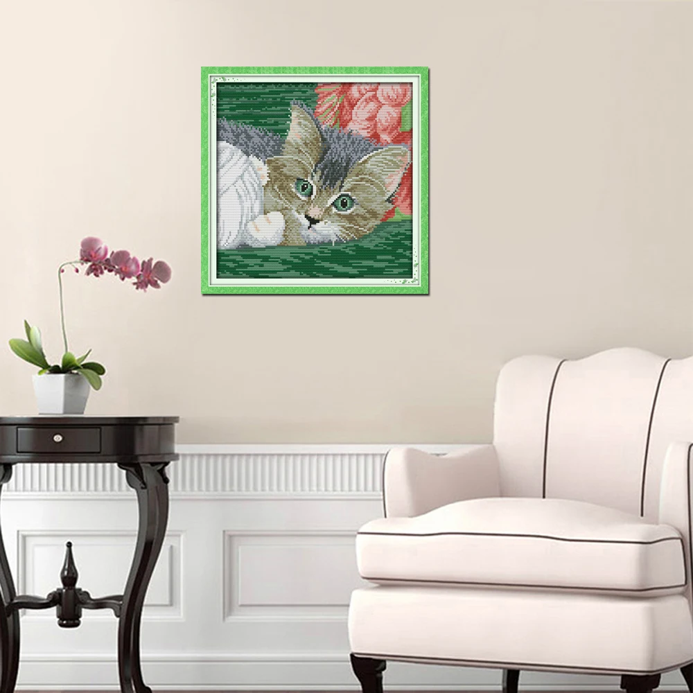 Joy Sunday The Cat Paly with The Circle of String Needlework Cross Stitch Sets for Embroidery Kits Counted Stamped Cross-Stitch