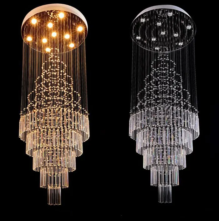 Роскошная лестница, длинная хрустальная люстра, арт-деко, лестница, блеск, дизайнерские люстры, большой промышленный проект освещения