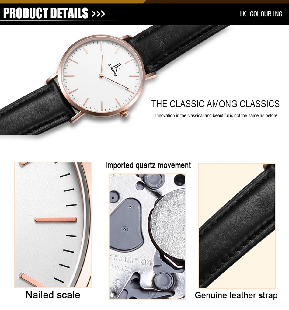 IK coloring ультратонкие минималистичные мужские часы Топ бренд класса люкс из натуральной кожи ремешок модные повседневные кварцевые часы деловой человекБренд: IK ОкраскаМодель: 3324Стиль: мужские часыХарактеристики: Круглый циферблат, прибитые весы, импортный кварцевый механизм, ремешок из натуральной кожи, Классические деловые мужские часы.Механизм: импортный кварцМатериал корпуса: сплавМатериал ремешка: натуральная кожаТип застежки: ПряжкаФункция: Водонепроницаемость 3 АТМОкно часов: HardlexДлина ремешка: 240 ммШирина ремешка: 18,6 ммТолщина циферблата: 7,1 ммДиаметр циферблата: 39,7 ммВес нетто: 37 г