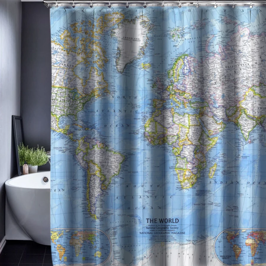 Всемирная карта душевая шторная занавеска для душа занавеска ванная купальная блокирующая шторка ткань полиэстер ткань 150*180 см + 12 крючковНам $22.64 /Шт