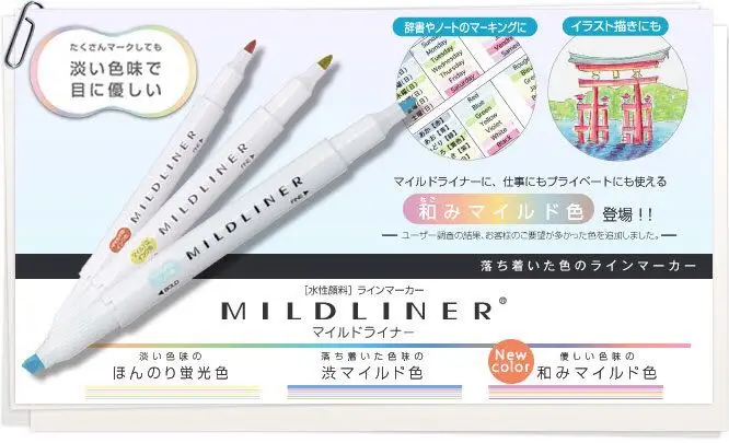 Хайлайтер Mildliner отличается уникальным цветом, который мягко отображается на бумаге. Он имеет только правильный оттенок, чтобы привлечь ваше внимание, но не будет переполнять вас яркой флуоресценцией. Эта хайлайтер на водной основе двусторонняя с широким и тонким наконечником.