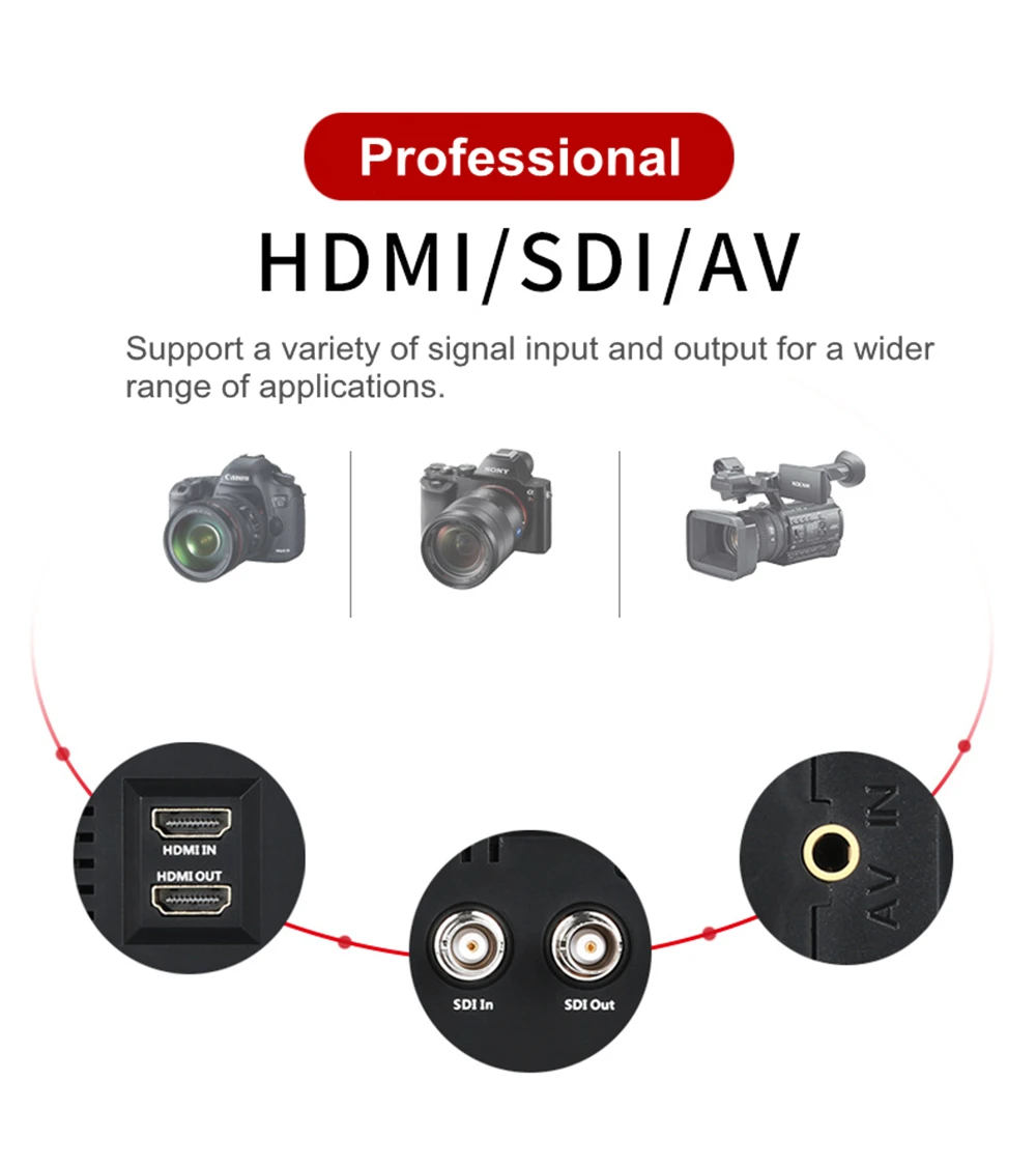 ЖК-дисплей: 7 дюймов Разрешение: 1024 × 600 пикселей Входной разъем: HDMI/SDI/AV/TALLY вход сигнала Выходной разъем: выход сигнала HDMI/SDI Аудио: громкоговоритель, порт для наушников 3,5, порт XLR Обновление программного обеспечения: порт обновления USB Источник питания: Вход постоянного тока (порт питания) постоянного тока 8В-18В Аккумулятор: NP-F550/F570/F750/F770/F960 (не входит в комплект) Рабочая температура: + 0 до + 40 °C (+ 32 до + 104 °F) Температура хранения: от-20 до + 60 °C (от-4 до + 140 °F) Размер: прибл. 191 × 148 × 45 мм Вес: прибл. 690 г (без аккумулятора)