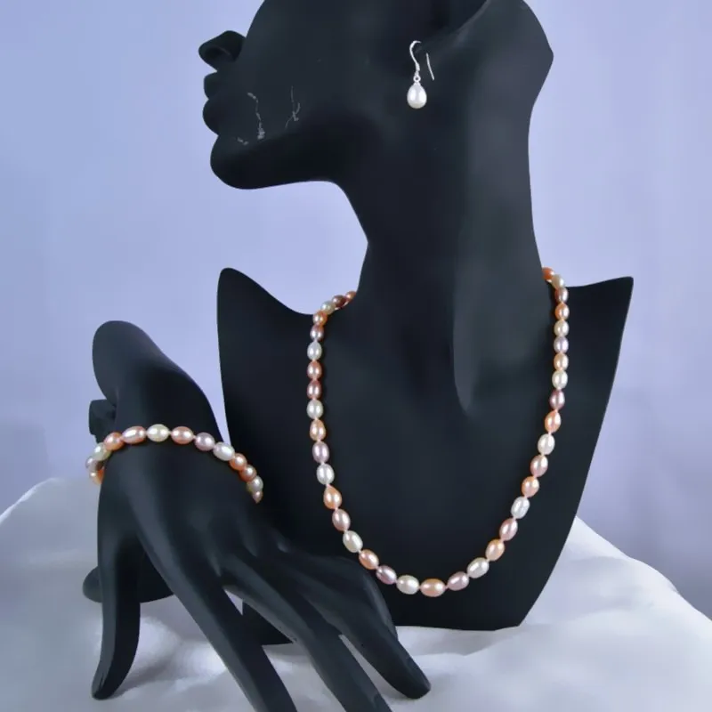 Бренд: ASHIQI Форма: рис Размер жемчуга: 7-8 мм Жемчужный Блеск: очень хорошо Цвет: белый/розовый/фиолетовый Поверхность: несколько дефектов Ожерелье: 45 см Браслет: 18 см Материал: 925 пробы ilver Упаковка: коробка для ювелирных изделий