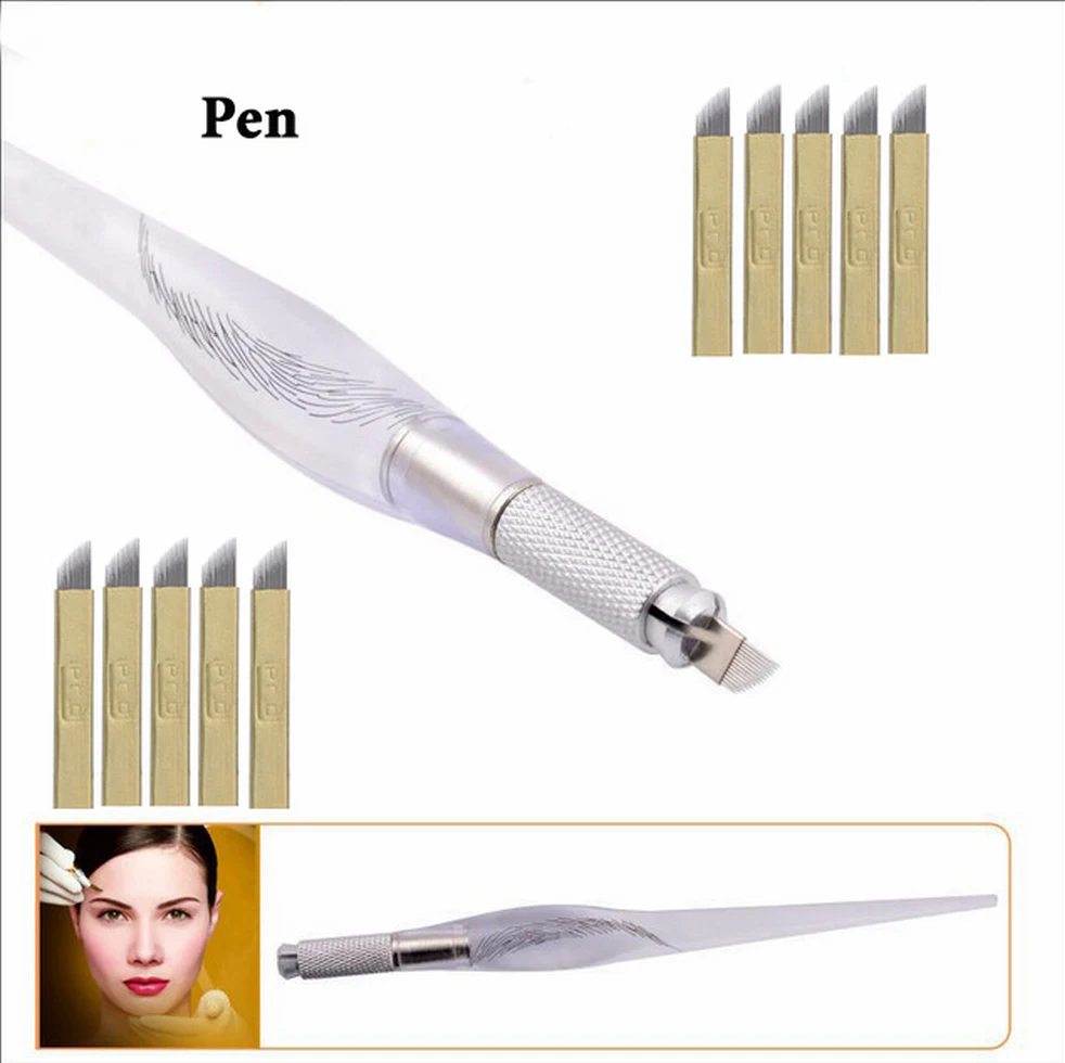 Золотая Ручка Tebori микроблейдинг ручка тату машина для перманентного макияжа татуаж бровей ручная ручка 1 шт. игла клинок микроблейдинг