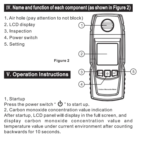 Тип датчика: Электрохимический CO Датчик